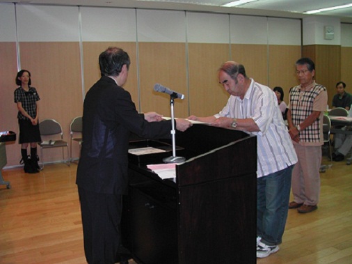 受賞者の方々に、観光協会丸森会長より賞状と副賞が手渡されます。 ご協賛いただきました皆さん、ありがとうございました。