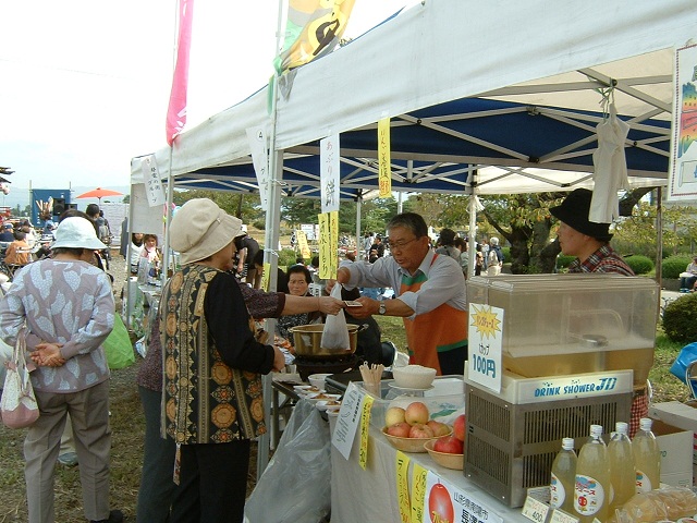 南陽市からは「長澤農園」さんが出展し、玉こんにゃくやりんごジュース、旬の果物などの販売が行われました。